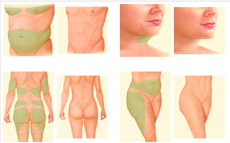 B : na kojim delovima tela se radi liposukcija?