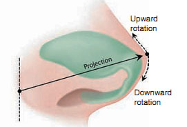 Rotacija vrha označava položaj vrha u odnosu na ostatak nosa i kažemo da neki nos visi, stoji normlano ili je prćast. Gledano odozdo nos bi trebao da ima izgled galeba raširenih krila.